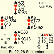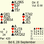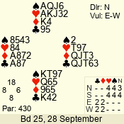 Con | Dc | Res | Score | Ld | Pairs | Rd | Tbl | 3 N | S | +1 | 430 | 5 | 02 - 03 | 1 | 2 |