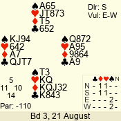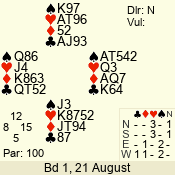 3 NT | W | +1 | -430 | J | 04 - 03 | 2 | 4 |