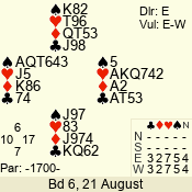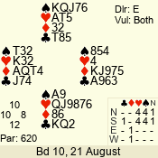 Con | Dc | Res | Score | Ld | Pairs | Rd | Tbl | 4  | E | = | -620 | K | 04 - 01 | 4 | 4 |