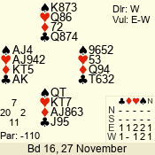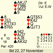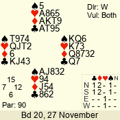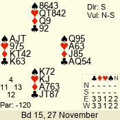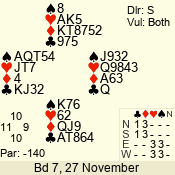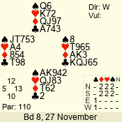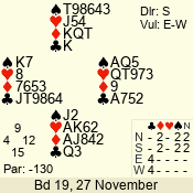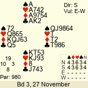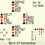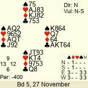 3 NT | W | +1 | -430 | 5 | 01 - 04 | 4 | 1 |