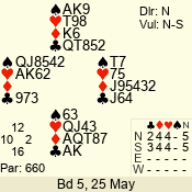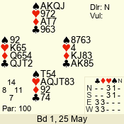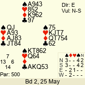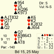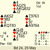 | Con | Dc | Res | Score | Ld | Pairs | Rd | Tbl | 4  | N | +2 | 480 | 3 | 01 - 05 | 3 | 1 |
