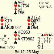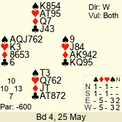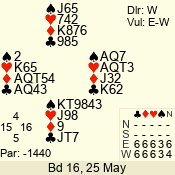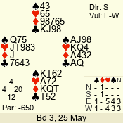 | Con | Dc | Res | Score | Ld | Pairs | Rd | Tbl | | 3 N | N | +3 | 690 | T | 04 - 01 | 4 | 4 |
