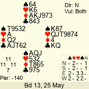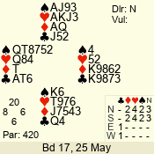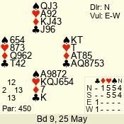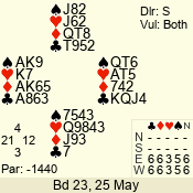 | Con | Dc | Res | Score | Ld | Pairs | Rd | Tbl | | 4 N | S | +1 | 460 | J | 01 - 03 | 5 | 1 |