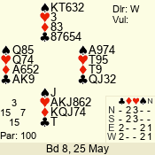| Con | Dc | Res | Score | Ld | Pairs | Rd | Tbl | 4  | S | +2 | 680 | A | 03 - 05 | 5 | 3 |