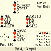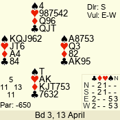 | Con | Dc | Res | Score | Ld | Pairs | Rd | Tbl | 4  | S | +1 | 650 | Q | 07 - 03 | 2 | 4 |