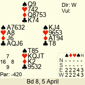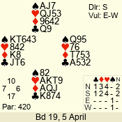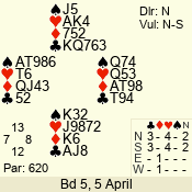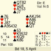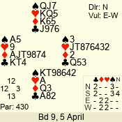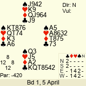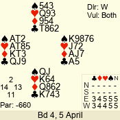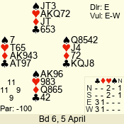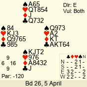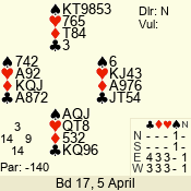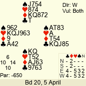 | 3 NT | W | +1 | -630 | 2 | 05 - 01 | 8 | 4 |
