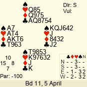 | 3 NT | S | -2 | -200 | A | 10 - 08 | 8 | 1 |