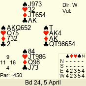 | Con | Dc | Res | Score | Ld | Pairs | Rd | Tbl | 4  | S | +1 | 450 | A | 06 - 02 | 9 | 4 |