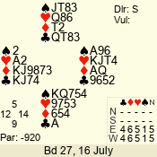 3 NT | W | +1 | -430 | 5 | 02 - 01 | 2 | 2 |