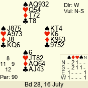 Con | Dc | Res | Score | Ld | Pairs | Rd | Tbl | 2 NT | W | = | -120 | 4 | 04 - 05 | 7 | 4 |