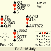 Con | Dc | Res | Score | Ld | Pairs | Rd | Tbl | 3  | E | -4 | 400 | J | 07 - 02 | 6 | 7 |