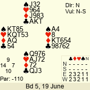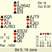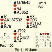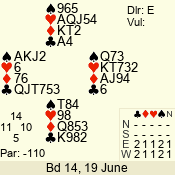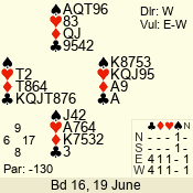 | Con | Dc | Res | Score | Ld | Pairs | Rd | Tbl | | 2 N | N | +3 | 210 | 4 | 05 - 05 | 1 | 5 |