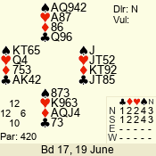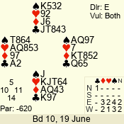 | Con | Dc | Res | Score | Ld | Pairs | Rd | Tbl | 4  | S | = | 420 | A | 02 - 03 | 5 | 2 |