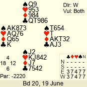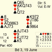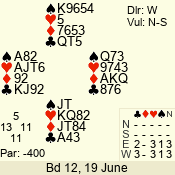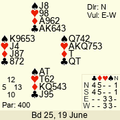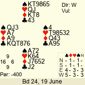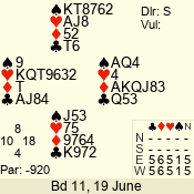 | Con | Dc | Res | Score | Ld | Pairs | Rd | Tbl | | 3 N | S | +3 | 690 | 3 | 04 - 02 | 3 | 4 |