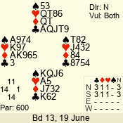| Con | Dc | Res | Score | Ld | Pairs | Rd | Tbl | | 3 N | S | +1 | 630 | A | 04 - 05 | 5 | 4 |