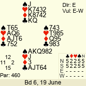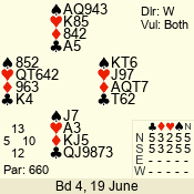 | Con | Dc | Res | Score | Ld | Pairs | Rd | Tbl | | 3 N | N | +2 | 660 | 3 | 03 - 02 | 2 | 3 |