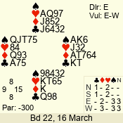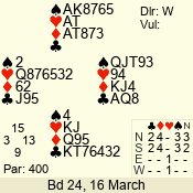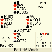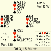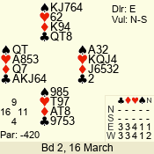 | 3 NT | E | +1 | -430 | 3 | 02 - 02 | 1 | 2 |