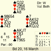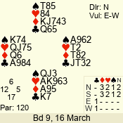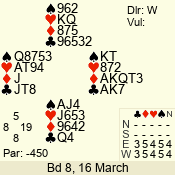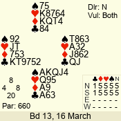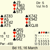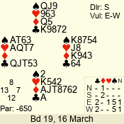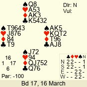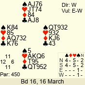 | 3 NT | W | +2 | -660 | 5 | 03 - 05 | 5 | 3 |