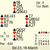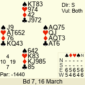| 3 NT | S | +1 | 630 | 7 | 03 - 02 | 2 | 3 |