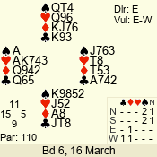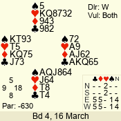 | 3 NT | E | +1 | -630 | 8 | 04 - 01 | 4 | 4 |