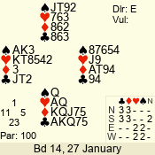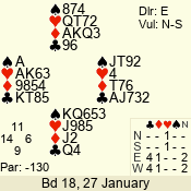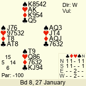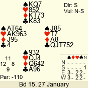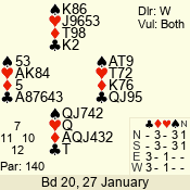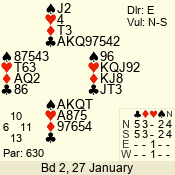 Con | Dc | Res | Score | Ld | Pairs | Rd | Tbl | 2 NT | N | +2 | 180 | 2 | 01 - 01 | 1 | 1 |