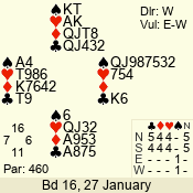 Con | Dc | Res | Score | Ld | Pairs | Rd | Tbl | 3 NT | N | +2 | 460 | 9 | 04 - 05 | 6 | 4 |
