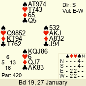 Con | Dc | Res | Score | Ld | Pairs | Rd | Tbl | 4  | S | +1 | 450 | 9 | 06 - 02 | 5 | 6 |