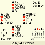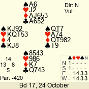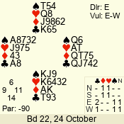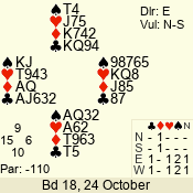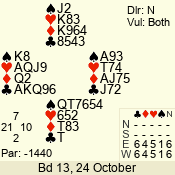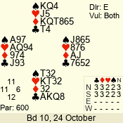 | 3 NT | E | +1 | -630 | 3 | 08 - 06 | 3 | 8 |