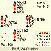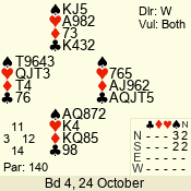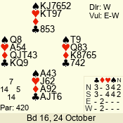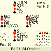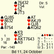 | 3 NT | W | +2 | -460 | 4 | 02 - 04 | 7 | 2 |