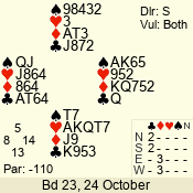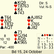 | 3 NT | W | +2 | -660 | 2 | 07 - 06 | 2 | 7 |