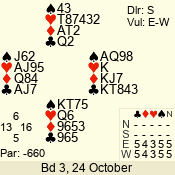 | 3 NT | W | +2 | -660 | 4 | 06 - 04 | 3 | 6 |