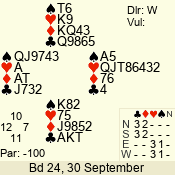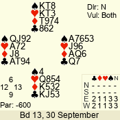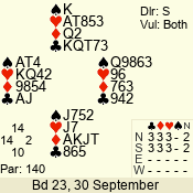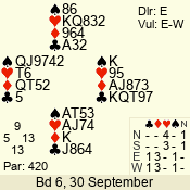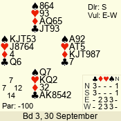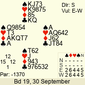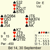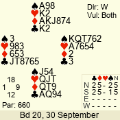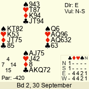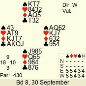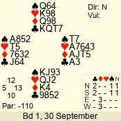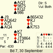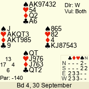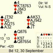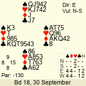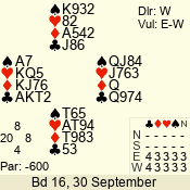 | Con | Dc | Res | Score | Ld | Pairs | Rd | Tbl |  | 2 N | W | -4 | 400 | A  | 08 - 03 | 6 | 8 |