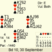 | Con | Dc | Res | Score | Ld | Pairs | Rd | Tbl |  | 6 N | S | = | 1440 | 5  | 04 - 08 | 7 | 4 |