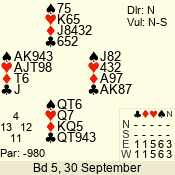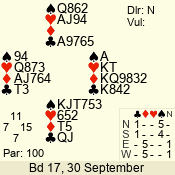 | Con | Dc | Res | Score | Ld | Pairs | Rd | Tbl |  5   | S | +1 | 480 | A  | 04 - 09 | 6 | 4 |
