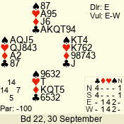 | Con | Dc | Res | Score | Ld | Pairs | Rd | Tbl |  | 1 N | N | +2 | 150 | 4  | 10 - 08 | 3 | 10 |