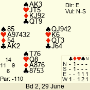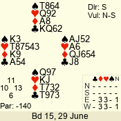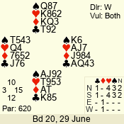Con | Dc | Res | Score | Ld | Pairs | Rd | Tbl | 3 N | S | = | 600 | 6 | 13 - 08 | 8 | 1 |