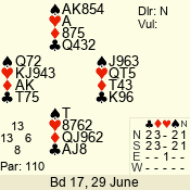 Con | Dc | Res | Score | Ld | Pairs | Rd | Tbl | 5 x | N | +2 | 1250 | A | 06 - 08 | 9 | 8 |