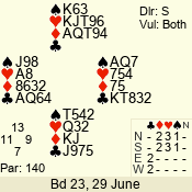 Con | Dc | Res | Score | Ld | Pairs | Rd | Tbl | 2  | S | +1 | 140 | T | 14 - 11 | 4 | 2 |
