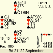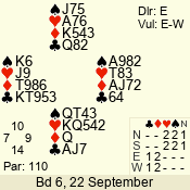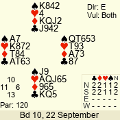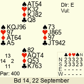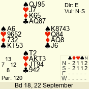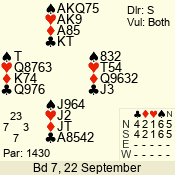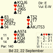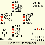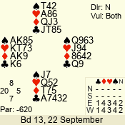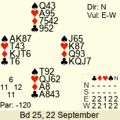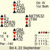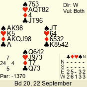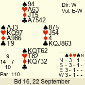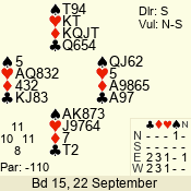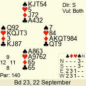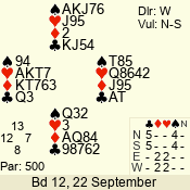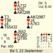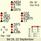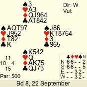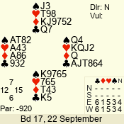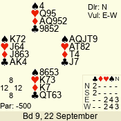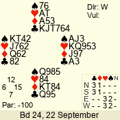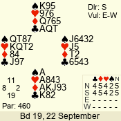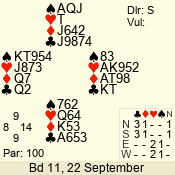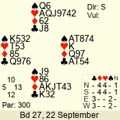 | 3 NT | S | +1 | 430 | 9 | 04 - 02 | 3 | 4 |