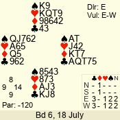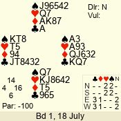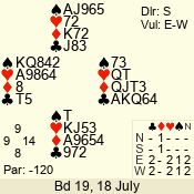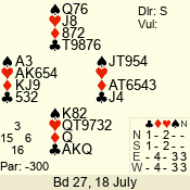 Con | Dc | Res | Score | Ld | Pairs | Rd | Tbl | 4  | S | +1 | 450 | A | 05 - 07 | 6 | 2 |