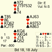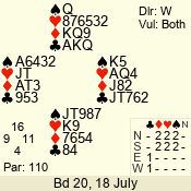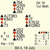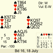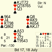 Con | Dc | Res | Score | Ld | Pairs | Rd | Tbl | 3 N | S | = | 400 | A | 02 - 06 | 4 | 1 |