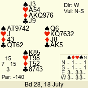 Con | Dc | Res | Score | Ld | Pairs | Rd | Tbl | 3 N | N | +3 | 690 | 5 | 08 - 06 | 6 | 4 |