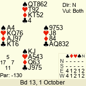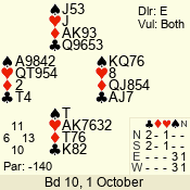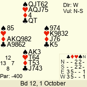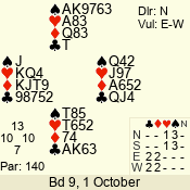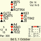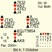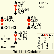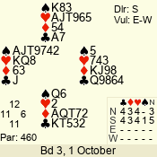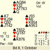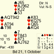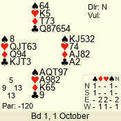 | Con | Dc | Res | Score | Ld | Pairs | Rd | Tbl | | 3 N | S | +1 | 430 | 8 | 04 - 09 | 6 | 4 |