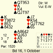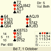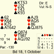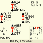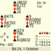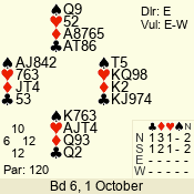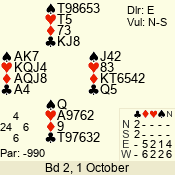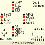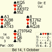 | Con | Dc | Res | Score | Ld | Pairs | Rd | Tbl | 6  | S | = | 1430 | 2 | 03 - 08 | 12 | 3 |