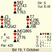 | Con | Dc | Res | Score | Ld | Pairs | Rd | Tbl | 4  | S | = | 420 | 2 | 10 - 01 | 12 | 10 |