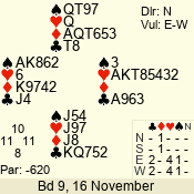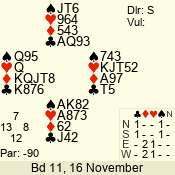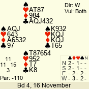 | Con | Dc | Res | Score | Ld | Pairs | Rd | Tbl | | 3 N | S | +1 | 630 | 2 | 04 - 01 | 4 | 4 |
