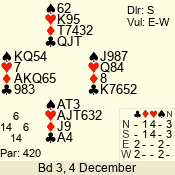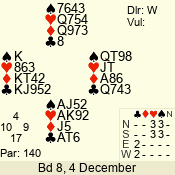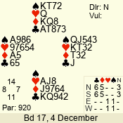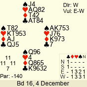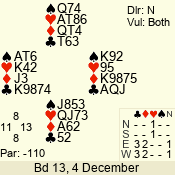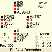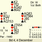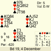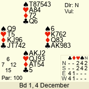 | 3 NT | W | +3 | -690 | 2 | 01 - 01 | 1 | 1 |