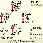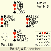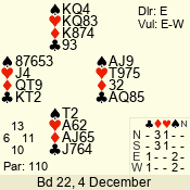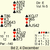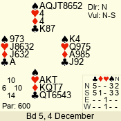 | 3 NT | E | +1 | -430 | 2 | 01 - 02 | 6 | 1 |