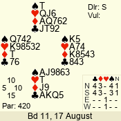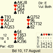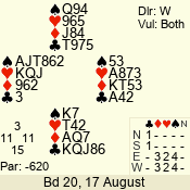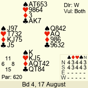 Con | Dc | Res | Score | Ld | Pairs | Rd | Tbl | 4  | S | = | 620 | 3 | 14 - 11 | 11 | 4 |