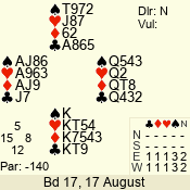 Con | Dc | Res | Score | Ld | Pairs | Rd | Tbl | 3 N | E | -2 | 100 | 5 | 11 - 03 | 4 | 5 |
